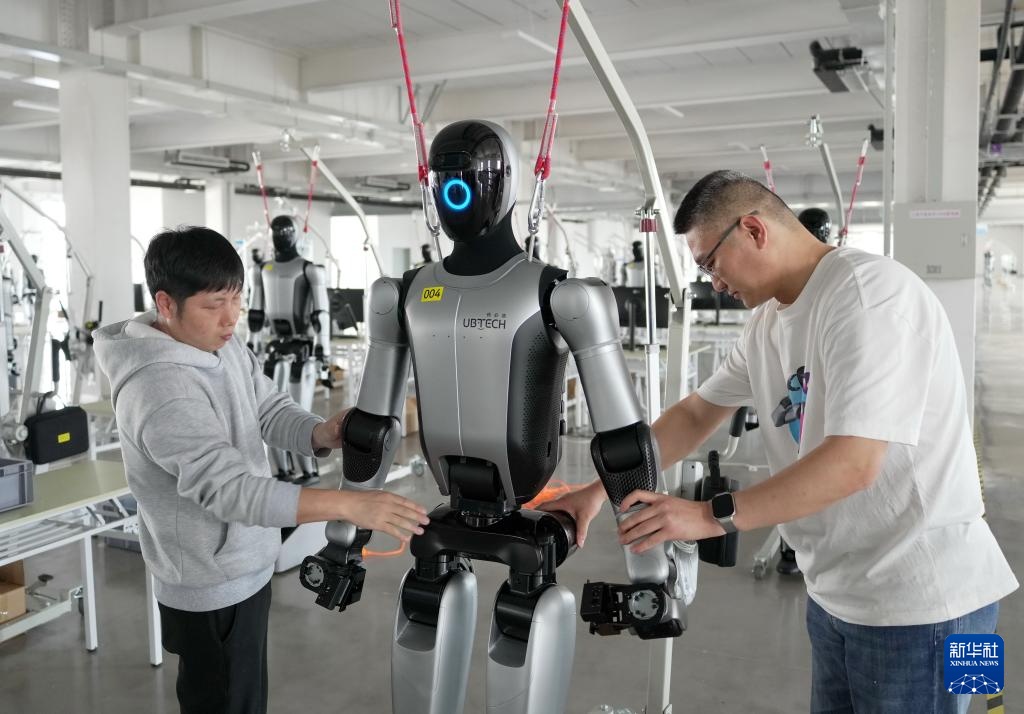 4月28日,秦皇岛市海港区秦皇岛小岛空间智能机器人产业基地的工作人员在调试机器人。新华社记者 杨世尧 摄